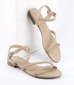 Women Flat Sandals Braided Leather Nude Summer Dressy Fashion