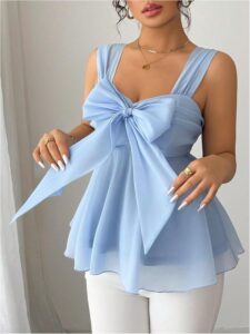 Women’s Tie Bow Mesh Peplum Blouse Sweetheart.